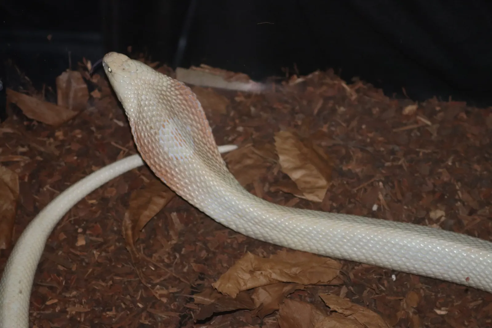 De Monocled Cobra (Naja kaouthia) is een gifslang uit Zuidoost-Azië die bekend staat om het karakteristieke “monocle” patroon op de achterkant van de nek. Wanneer de slang zich bedreigd voelt spreidt hij zijn kap en wordt het ronde oogvormige patroon zichtbaar. Deze soort behoort tot de familie van de elapiden en beschikt over een krachtig neurotoxisch gif.